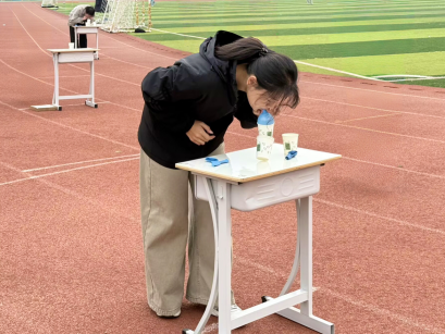本次活动以班级为单位开展,每个班级的14名选手被分为三组进行接力。比赛设置了八个趣味关卡,既对个人能力进行考验,更强调团队的配合。“一气呵成”环节要求选手使用乒乓球拍连续颠球20次,以此考验选手的专注力;“气球托筒大转移”环节,需要选手通过吹气来转移纸筒,展现出选手的耐心与技巧;“乒乓球过河”环节趣味性极强,选手俯身吹动乒乓球越过水杯,现场欢声笑语不断;“乒乓快夹”环节则对选手的手眼协调能力进行考验。