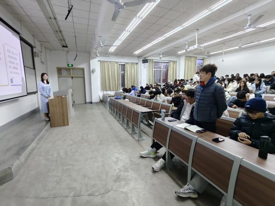 讲座伊始,凌老师以“大四阶段的目标选择”为互动切入点,围绕升学、就业等多元发展路径与同学们展开交流与探讨。她结合自身执教初期从忐忑到从容的转变历程,生动阐释了“理想的实现从来不是一蹴而就,而是在脚踏实地的行动中不断完善”的深刻道理。