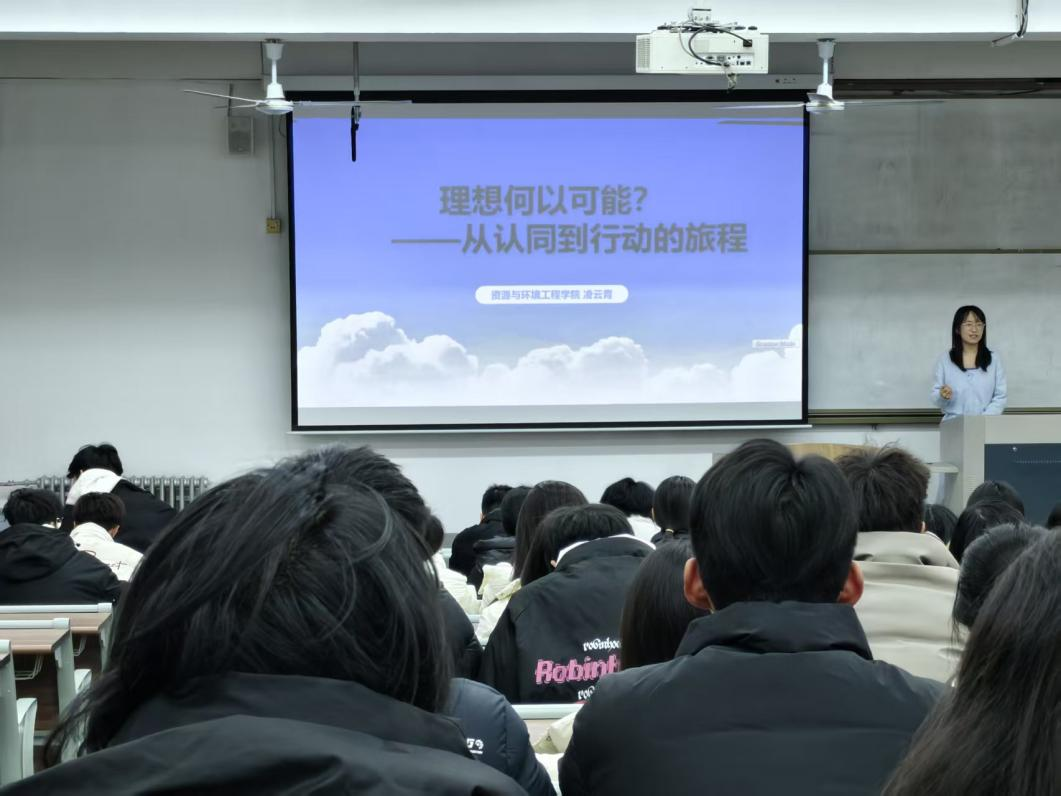 2025年12月1日,资源与环境工程学院首期“经纬讲堂”在北区四号教学楼202教室顺利开讲。学院凌云霄老师以“理想何以可能?——从认同到行动的旅程”为题,通过生动案例与诚挚分享,引导学生深入思考理想与行动之间的关系,开启一场关于成长与追寻的对话。