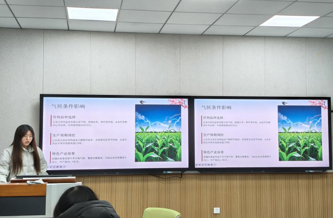 活动伊始,主持人介绍今日主题“乡产焕新-农村企业的转型之路”。本次活动还特别邀请了两位研究生师哥师姐,分别是研究区域发展与产业规划方向的毛文洁师姐和研究城乡规划学方向的胡新宜师哥。在小组案例分享环节,6支小组围绕核心议题依次展开汇报,有的小组侧重于地理因素对乡村产业转型的影响,而有的小组则侧重于国家政策等外部因素对乡村产业转型的驱动。每组分享结束后,同学们开始积极踊跃地发言,结合自身理解提出疑问与补充,形成了良好的交流氛围,而毛文洁师姐、胡新宜师哥则结合自身研究经验,对各小组的分享内容进行针对性的补充,帮助在场同学进一步深化了对“乡产焕新”核心议题的理解。