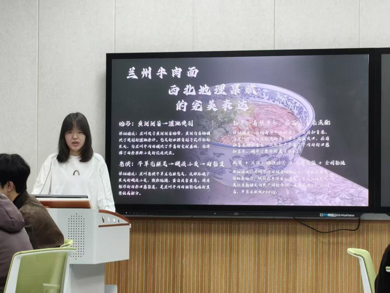 本次活动以“舌尖上的地理:饮食文化差异背后的地理逻辑”为核心议题,聚焦地形、气候、土壤、水源四大自然地理要素,结合专业知识与典型案例,深度解码中华饮食文化的地域分异规律。活动立足乡村振兴、生态环保、区域协同等政策导向,解读地理饮食资源的产业转化与文化传承路径,进一步增强了研讨的现实意义。同学们畅所欲言、碰撞思想火花,共同探讨饮食文化与地理环境的内在关联。