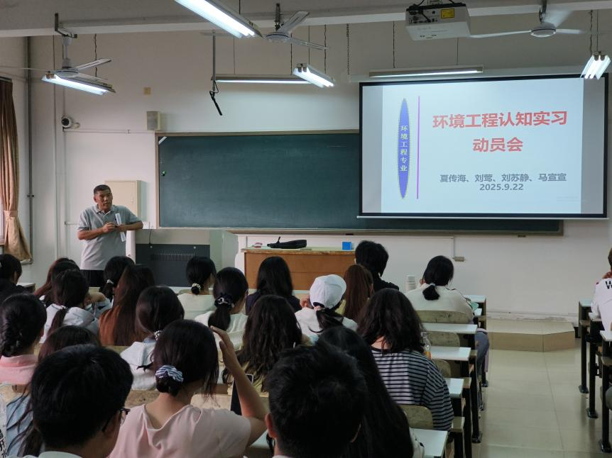环境工程专业动员会上,夏传海教授从多维度为新生梳理实习要点。他不仅详细宣讲了校内外实习的具体内容与实施流程,还重点强调了实习安全规范,明确安全操作红线与防护要求;同时,对实习期间的注意事项、需提前做好的准备工作,以及实验报告的撰写标准、提交时间等进行逐一说明,助力同学们顺利完成实习目标,同时帮助大家正确认知环境工程专业,为后续的专业学习生活奠定基础。