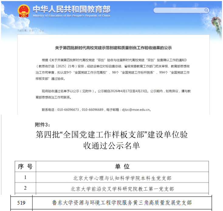 近日,教育部公布了第四批新时代高校党建示范创建和质量创优工作验收结果,我院服务黄三角高质量发展党支部榜上有名,顺利通过“全国党建工作样板支部”培育建设验收。